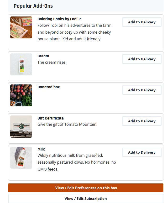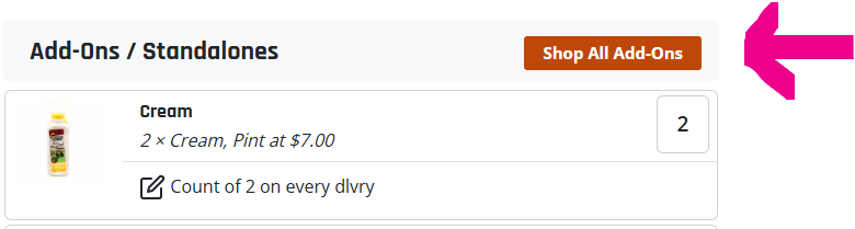 You can schedule popular storefront add-ons for your box directly from the customization screen. Simply scroll to the bottom to see what's available: