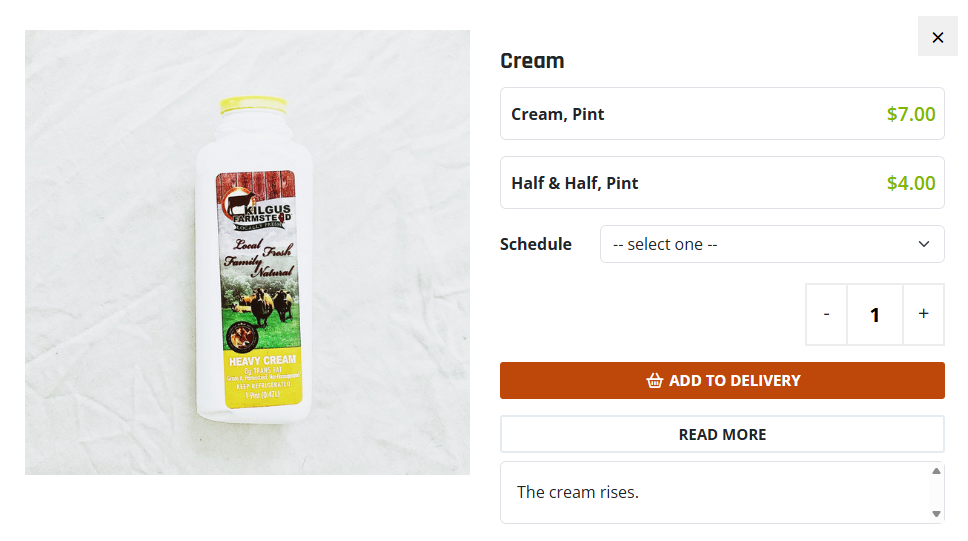 Once you click the Add to Delivery button, you will have the option to choose the quantity and schedule.